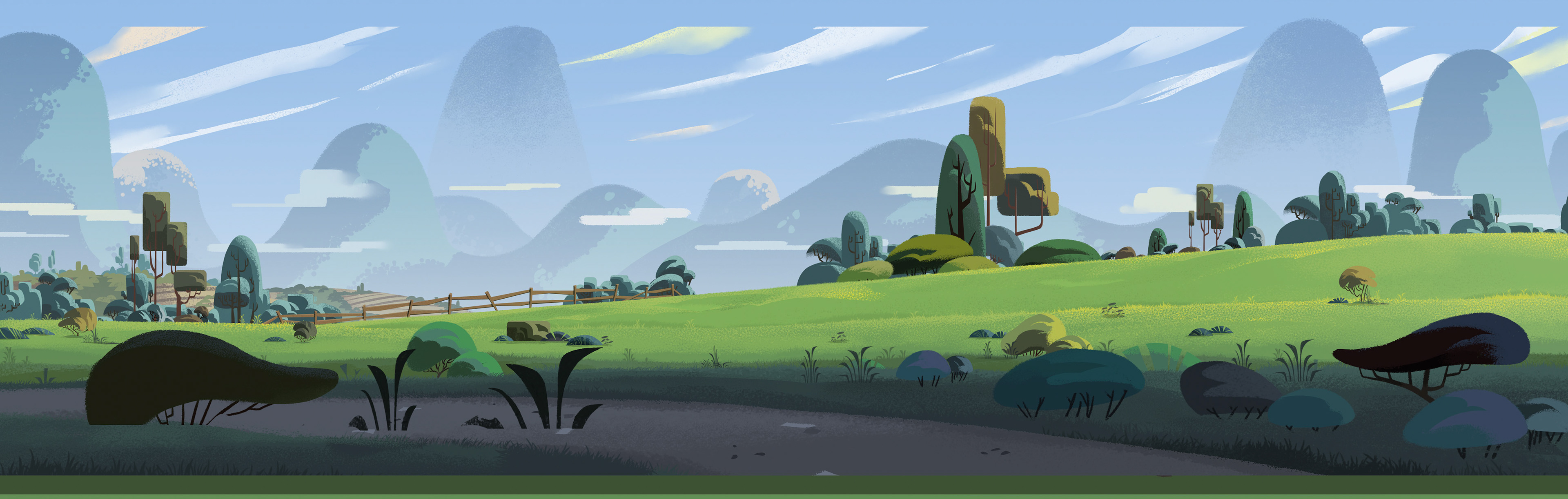 Background layouts and paintings I did for the French TV show The Upside Down River.